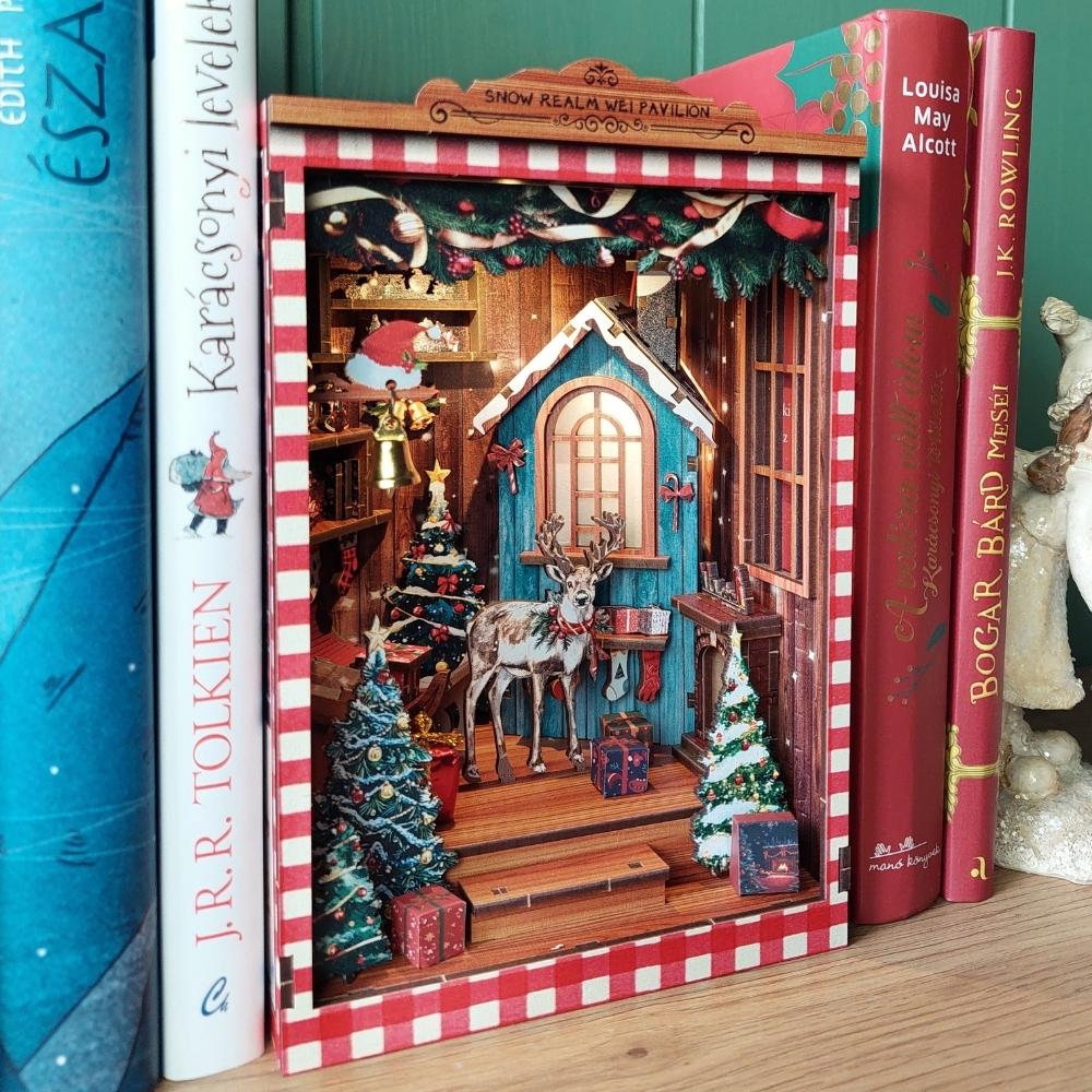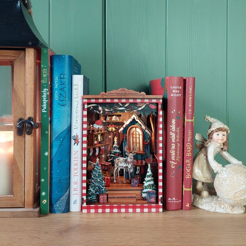 A Könyvkuckók aprólékosan kidolgozott, miniatűr jeleneteket ábrázoló diorámák. Az apró kis elemekből — ahogy szépen lassan összeállnak a kezed alatt — kibontakozik egy varázslatos világ, amely egy regény vagy a képzelet birodalmának egy részletét kelti életre. Az olvasósarkodban elhelyezve, mintha egy másik világra nyílna ajtó a könyveid között.