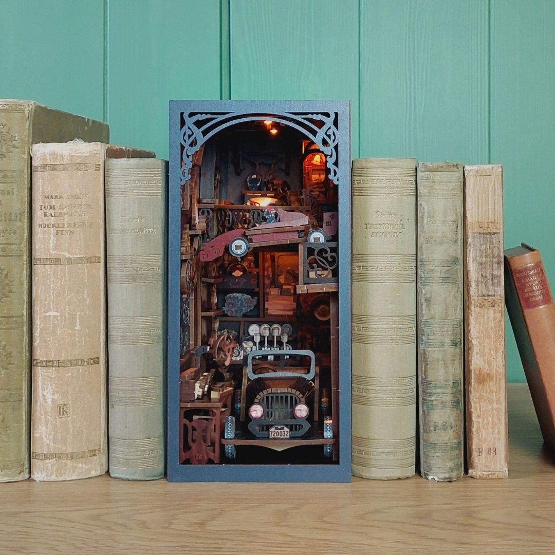 A Könyvkuckók aprólékosan kidolgozott, miniatűr jeleneteket ábrázoló diorámák. Az apró kis elemekből — ahogy szépen lassan összeállnak a kezed alatt — kibontakozik egy varázslatos világ, amely egy regény vagy a képzelet birodalmának egy részletét kelti életre. Az olvasósarkodban elhelyezve, mintha egy másik világra nyílna ajtó a könyveid között.