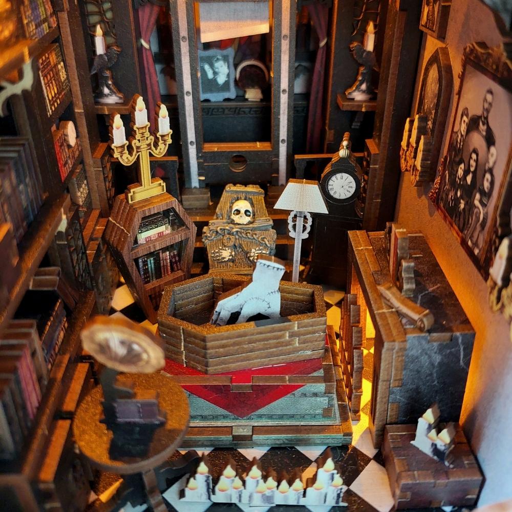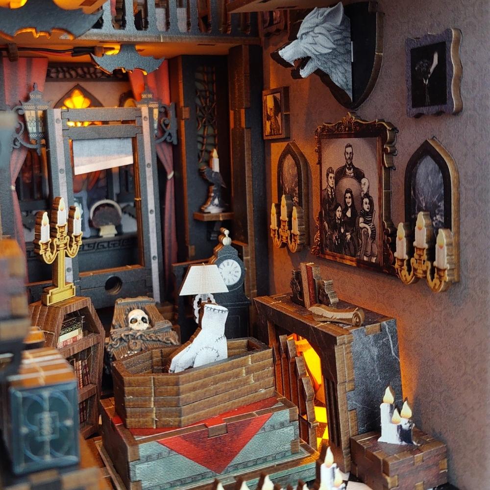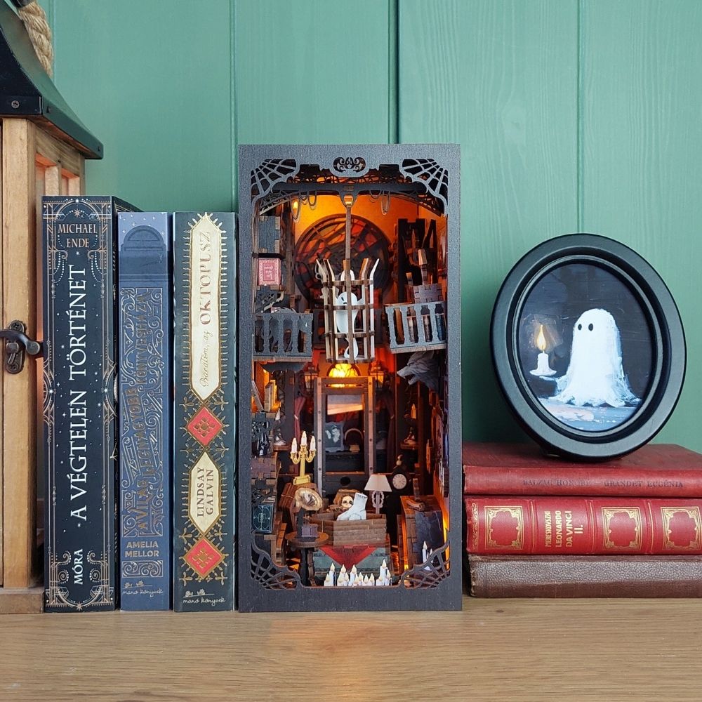 A Könyvkuckók aprólékosan kidolgozott, miniatűr jeleneteket ábrázoló diorámák. Az apró kis elemekből — ahogy szépen lassan összeállnak a kezed alatt — kibontakozik egy varázslatos világ, amely egy regény vagy a képzelet birodalmának egy részletét kelti életre. Az olvasósarkodban elhelyezve, mintha egy másik világra nyílna ajtó a könyveid között.