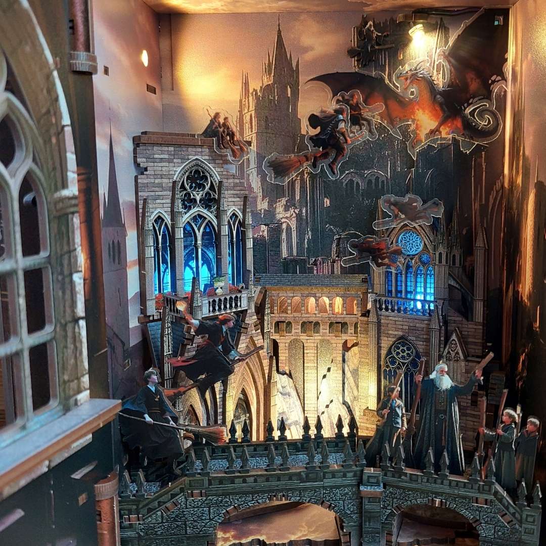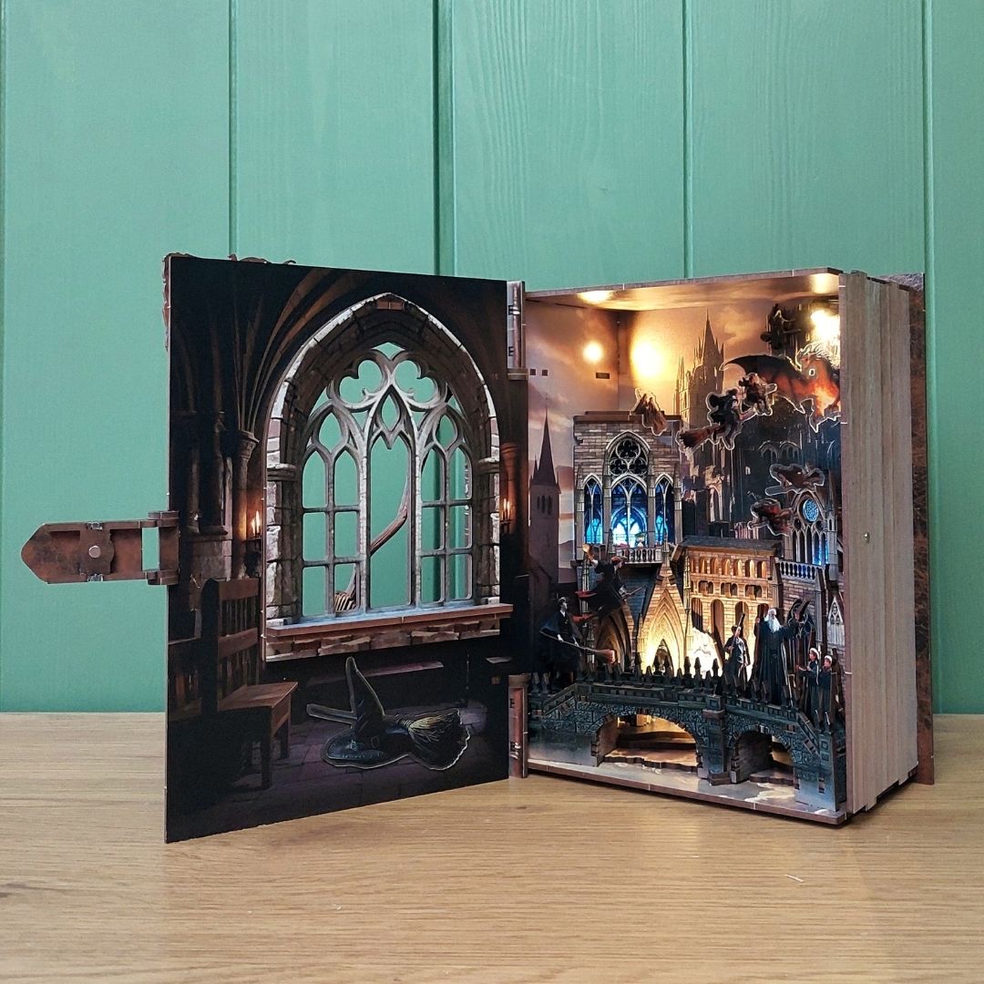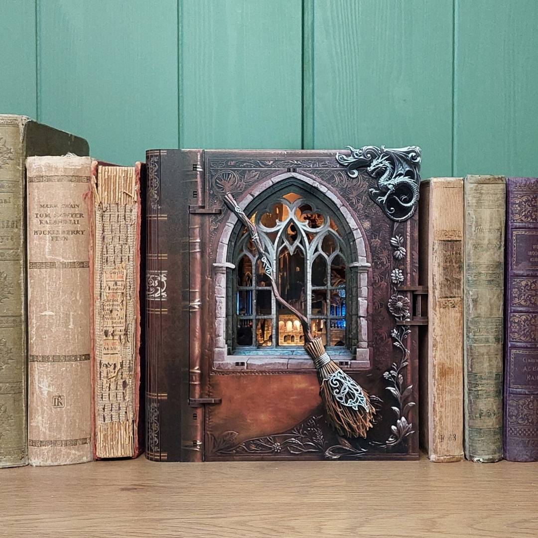 A Könyvkuckók aprólékosan kidolgozott, miniatűr jeleneteket ábrázoló diorámák. Az apró kis elemekből — ahogy szépen lassan összeállnak a kezed alatt — kibontakozik egy varázslatos világ, amely egy regény vagy a képzelet birodalmának egy részletét kelti életre. Az olvasósarkodban elhelyezve, mintha egy másik világra nyílna ajtó a könyveid között.